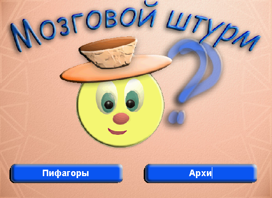 Игра. На проекторе появляется первый слайд игры, куда вводятся названия команд.